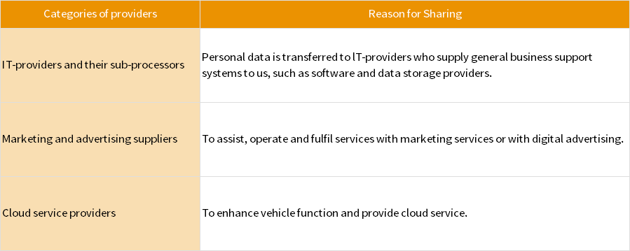 1.The processing of personal data when you use our vehicle;
