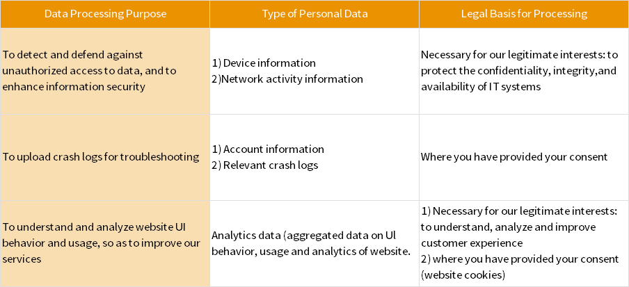 We may rely on various legal grounds to collect, use, and otherwise process your information, including: your consent; that the information is necessary for the performance of a contract with you; to comply with a legal obligation; to protect your, or someone else’s vital interests; or for a legitimate interest that is balanced against your rights and interests. These legitimate interests may include CHERY’s interest in improving its products and services, enhancing safety and security, protecting CHERY or its business partners against wrongful conduct, and responding to customer inquiries and claims. Where applicable, we will inform you whether and why we need certain information from you, for example, whether we need the information to fulfill a legal or contractual requirement and what the consequences are of not providing the information.